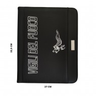 Cartellina professionale con copertina personalizzata vigili del fuoco. Munita di block notes incluso, tasche porta carte, porta penna chiusura con zip.